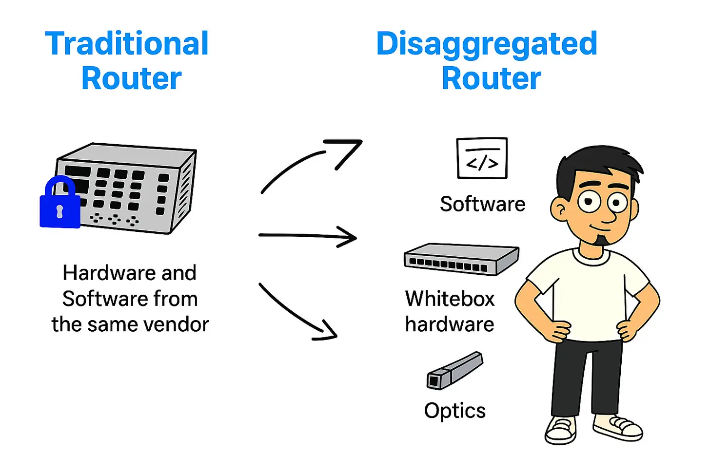 In practice, this means we split systems into three clear elements: commodity hardware, a network operating system, and control interfaces. Each part can evolve on its own schedule without a full forklift upgrade. This shift began in hyperscale cloud and now shapes telecom and enterprise environments.